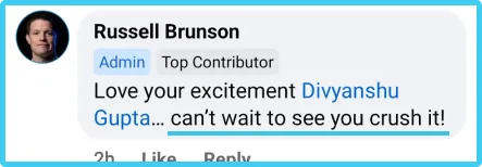 Funnel Work is appreciated by "Russell Brunson", "Saurabh Bhatnagar", and Many 2CC Award and Achievers Award Winners for the Funnels and Automation services .